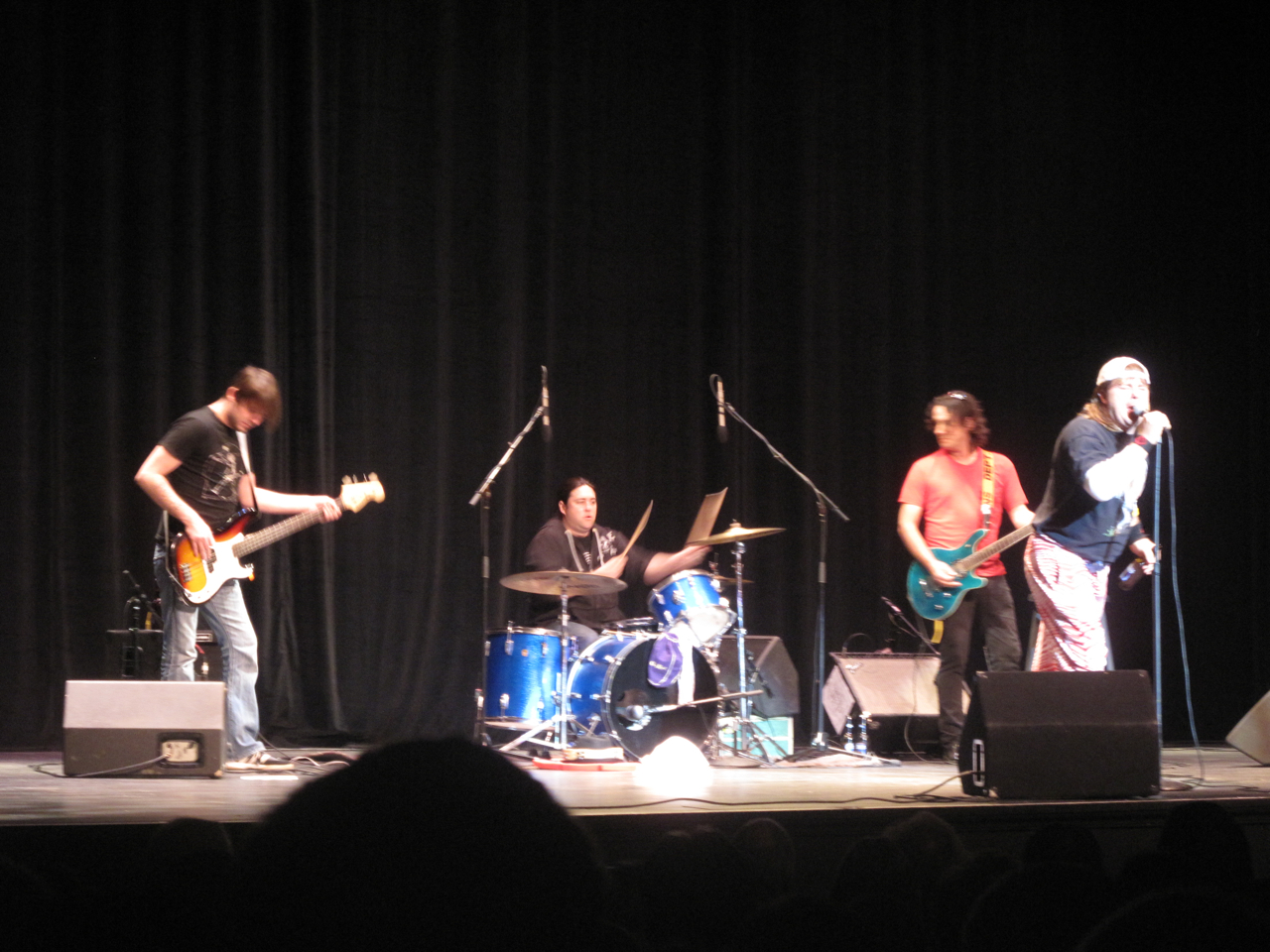 W: But the best was yet to come. The true talent of the show was Donnie Baker, backed by his virtuosic rock ensemble the Pork Pistols. Handsome, articulate, erudite, genteel, totally kempt, Donald Baker, the aristocratic, multi-talented showman, treated us to the concert of a lifetime. Generously rescuing, repairing, and completing unfinished songs by the lesser talents of Michael Jackson, Prince, Van Halen, Ozzy Osbourne, and others, he was all class, polish, and false modesty. The aura of love he emanated, his considerable talents as a dancer, and what must be the best pipes in the business, enchanted the entire theater. For those of us lucky enough to not be numbingly drunk, it was a night to remember and to cherish always.