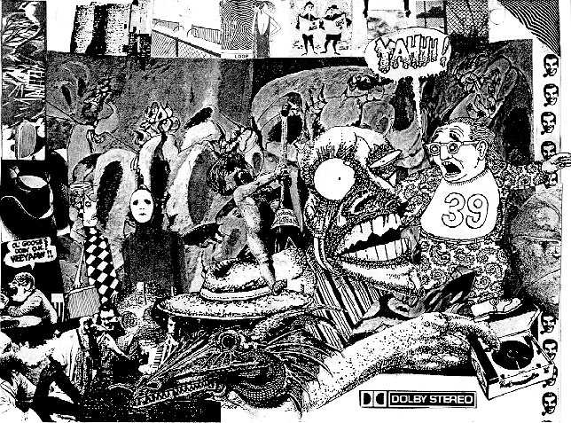 meanwhile the party avalanches on, has set the ginsoaked fabric of night ablaze. it is Death's art opening. the guests admire the paintings loudly and foolishly. "oh this one is more surreal than that one." "like pointillistic cubism." "how much is this one?" lofty artistic ideals are slowly being trampled in the honesty-inducing climate of drunken hedonism. the conversation is rising to waterfall decibels. people who recognize people who know people are able to arrange introductions, coy masks of superficial acceptance paved over cruel preconceptions. those they are not able to meet they are able to safely draw conclusions about from across the room. your friends are your clothes. you are what you wear and the styles in your hair. full of anticipations Jordan is preparing to exit with a giggly woman whose name he stoicly and heroicly struggles to remember while his fiancee Amy stirs sluggishly asleep on the bed amidst the minks. other people have formed more concise parties behind sealed doors of adjoining rooms releasing the demons of shared perversions. you did not expect to see the reaper of souls poised serenely in the fur and emerald tide of perfume pretensions and white wine.